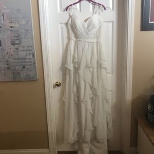 Galina white tiered wedding dress sz10 with zippered back. Needs to be dry cleaned (bottom under dress is dusty).