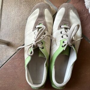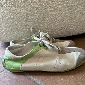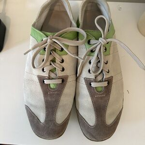 Ermenegildo Zegna men’s suede lace up shoes. Beige with green and brown accents. Originally $1300. Very comfortable and great condition. Can be dressed up or dressed down and an elevated shoe for any closet. Size 10.5
