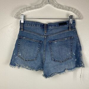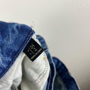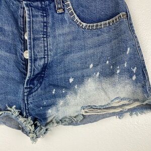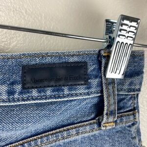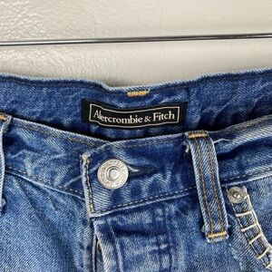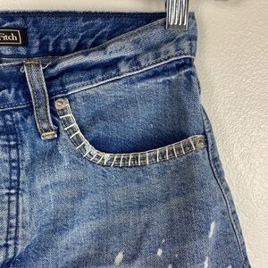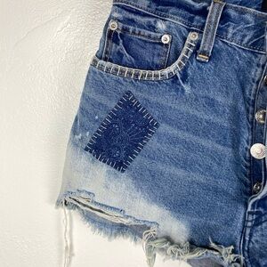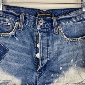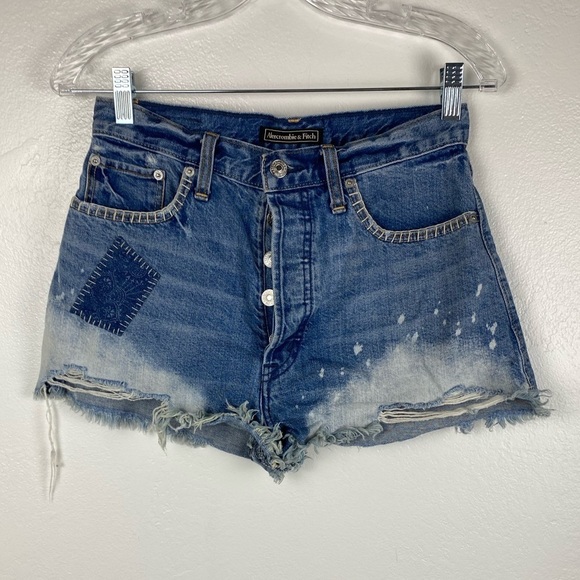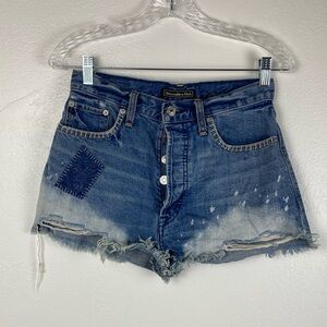 Abercrombie & Fitch High Rise Bleach Acid Wash Boho Button Fly Patchwork Blue Denim Jean Shorts Women’s size w26 L2