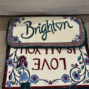 Chic and stylish tote bag featuring a vibrant embroidered 'Love' design. Perfect for adding a pop of color to any outfit. Elevate your everyday style with the Brighton Bella Tile Tote, a canvas tote that exudes both functionality and fashion.