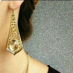 Delicate gold filigree combines with a bold faceted stone to create these must-have statement earrings.