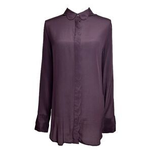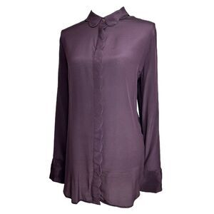 Banana Republic Silk Top Womens Purple Scalloped Long Sleeve Button Blouse