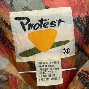 Protest Mens Vintage Silk Button Down Shirt Size XL 1990s Geometric Collar Prep. This shirt is pre-owned. Excellent condition. No flaws. Measurements: 26 inch chest 35 inch length 25 inch waist