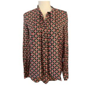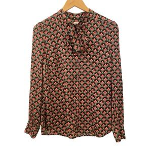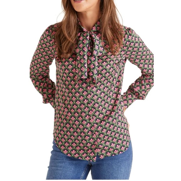 Boden Womens Thelma Tie Neck Blouse Button Down Size 6 Green Pink Long Sleeve