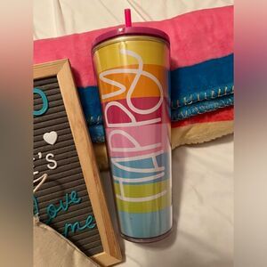 This is for a mystery box of happy items! Includes items shown, all new. Cup has small scratch, blanket is 46”x60”
