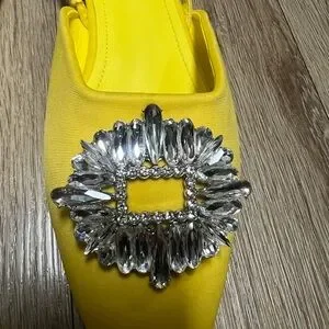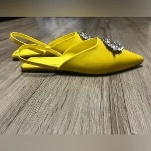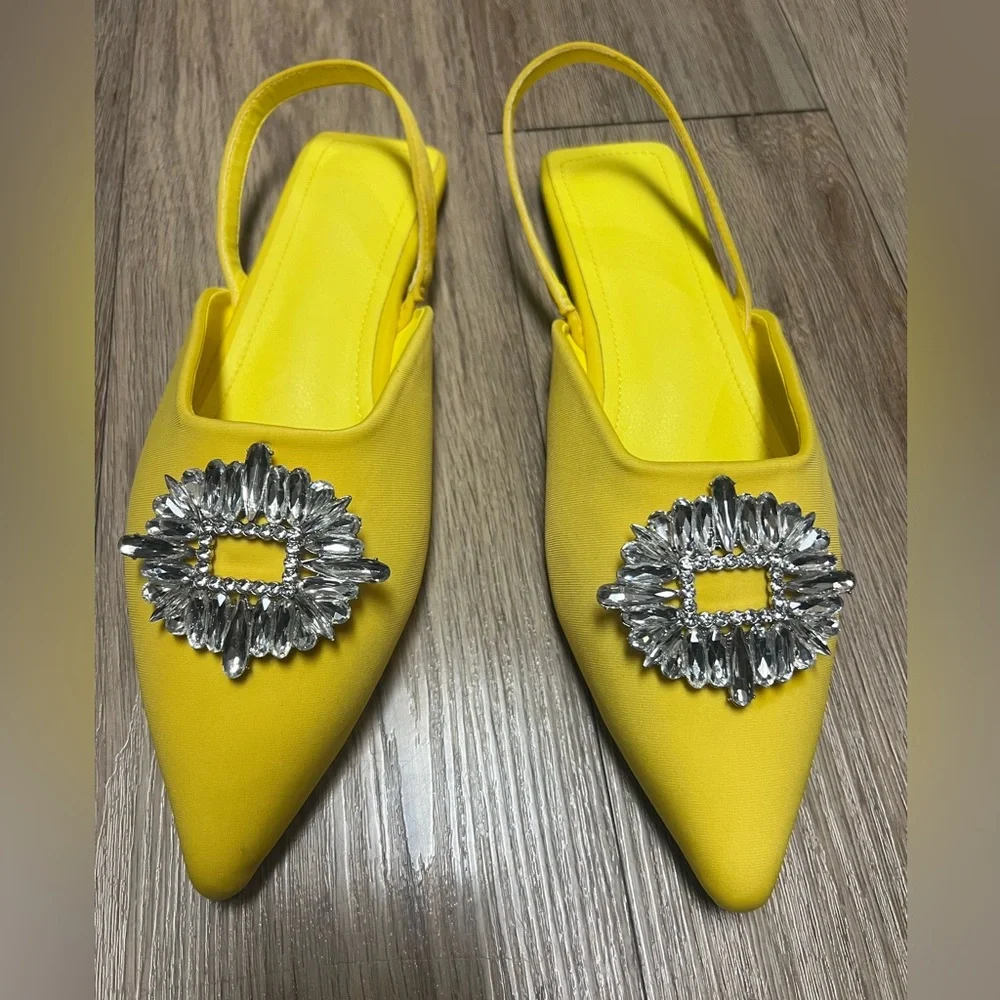 Beautiful yellow gemstone decor point toe slingback flats size 41 which is a size US 10.5
