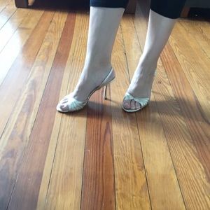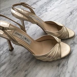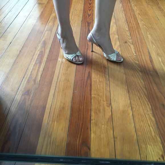 Jimmy Choo. Bought in Orlando at Millenia. Kitten heel height approx 3.5. Worn to an awards banquet.