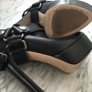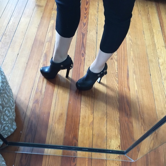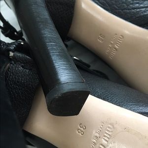 Miu Miu. Worn indoors 1 time. Bought in LA at Fred Segal. Heel height approx 5.5. Missing one leather pull on the back zipper. These are amazing booties.