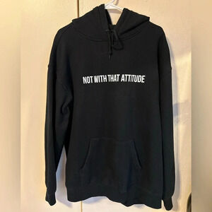 Very cozy and high quality, the perfect hoodie! “Not with that attitude” print sweatshirt. Also has “sisters” printed on the left sleeve. Perfect condition.