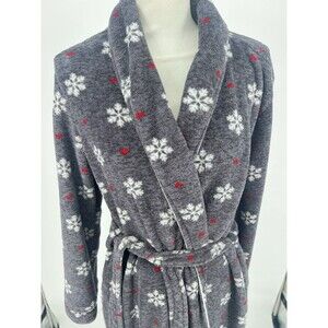 Laura Ashley robe, fleece robe women, cozy lounge robe, winter robe, snowflake robe, belted robe XL, plush bathrobe, holiday loungewear, cabin core, cozy core, soft fleece robe, womens XL robe
