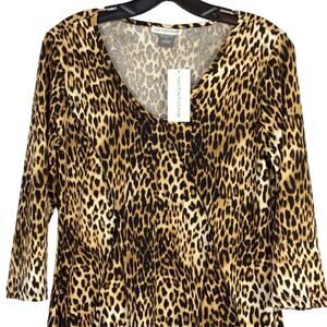 Notation Shirt Womens Small Tunic Cheetah Print Sharkbite Hem 3/4 Sleeves V Neck