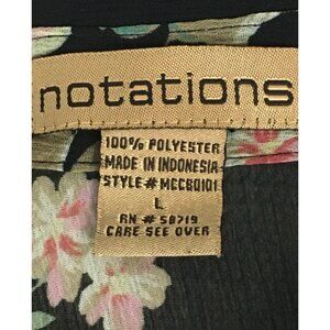 Notation Top Women Size L Black w Pink Blue Flowers Button Down Sheer Blouse