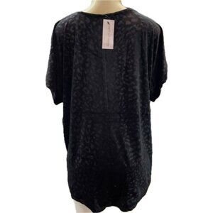 Items: Notations +2X Black Embossed Velour Animal Print Keyhole Scoop Neck Short Sleeve Top