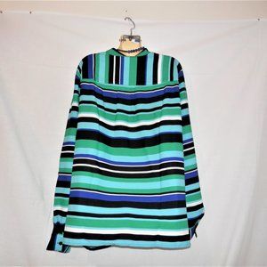 Straight hem with 5" side slits. Turquoise, Green, Royal Blue, Black and White stripes.