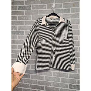 Notations 90s Striped Button Down,Long Sleeve Classic Women Blouse Size Medium