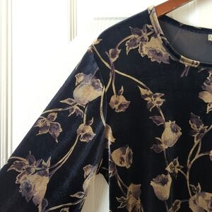 Notations 90's Vintage Whimsigoth Rose Printed Velvet Long Sleeve Top Black L