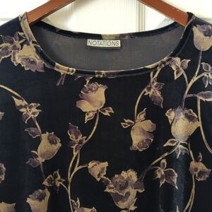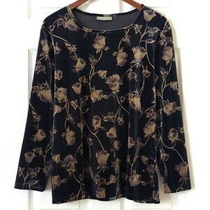 Notations 90's Vintage Whimsigoth Rose Printed Velvet Long Sleeve Top