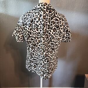 Notations Animals Leopard print Short Sleeve 2 Button Shacket Plus Size 1X