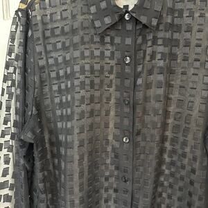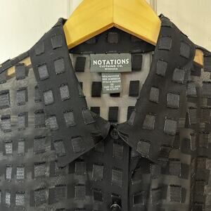 Notations Black Sheer Blouse Button Up Womens 1X Vamp Goth Witchy Elegant Dressy