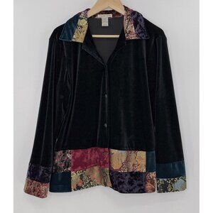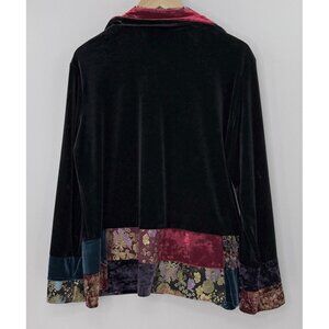 Notations Black Velvet Patchwork Jacquard Bohemian Button Jacket L Art To Wear