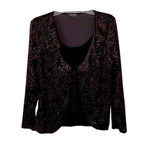Notations Black Velvet Top with Red Glitter Paisley print Whimsygoth Dark Romantic Witchy. Excellent preowned condition with no flaws.