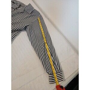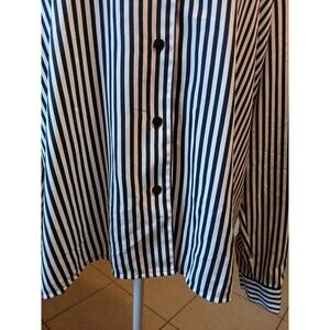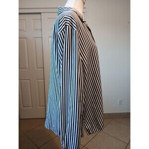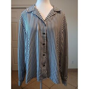 Notations Black White Striped Blouse XL Button Front Long-Sleeve Career Office