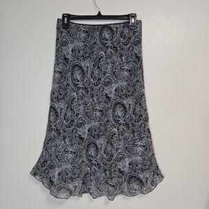 Notations Black and White Paisley A-line Midi Skirt Size Medium