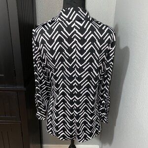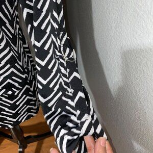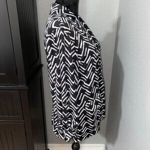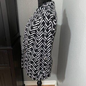 Notations Blazer Womens Medium Black White Office Open Front Monochrome Artsy
