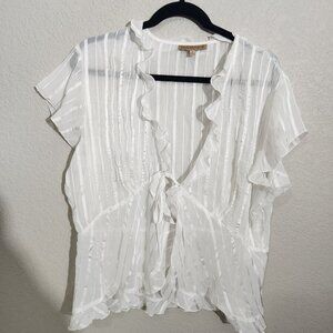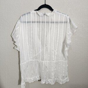 Notations Blouse Sheer Striped Ruffle XL White