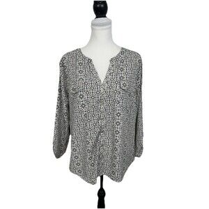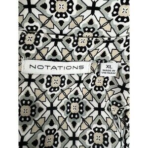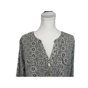 Notations Blouse Size XL Button Neck Roll Tab Sleeve Top Multicolored V Neck