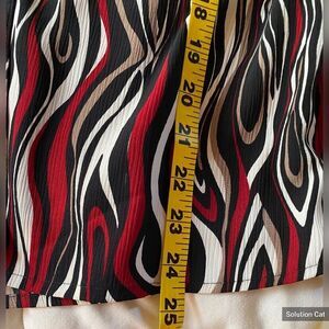 Notations Red Black White Swirls Short Sleeve Blouse Attached Cami Size Medium.