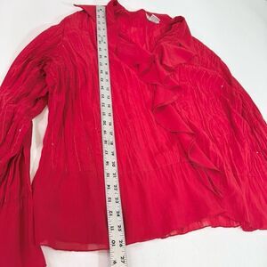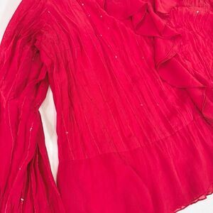 Notations Blouse Womens 2X Red Polyester Long Bell Sleeve V-Neck Ruffled Sequins