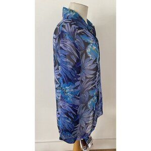 Notations Blue Floral Blouse Size S Lightweight Button Front Top