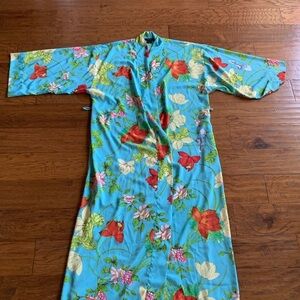 Bohemian styled lingerie robe light blue large bright floral print pockets inside tie closure (belt missing) other great condition smoke/pet free home