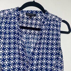 Notations Blue Geometric Sleeveless Reverse Pattern Button Up Blouse Small
