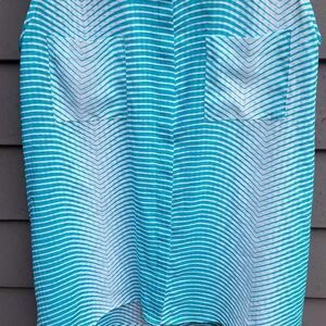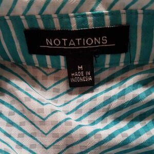 Notations Blue White Stripe Sheer Sleeveless Button Down Blouse size Medium