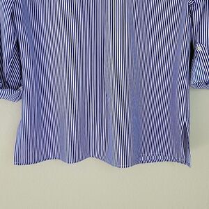 Notations Blue White Striped Long Sleeve Button Down Blouse size L Roll Tab NWT