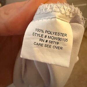 Timeless white button-down shirt. Ideal for any occasion. Features a classic collar and short sleeves. 100% polyester and quite sheer. Labeled as large, but wears like a S/M