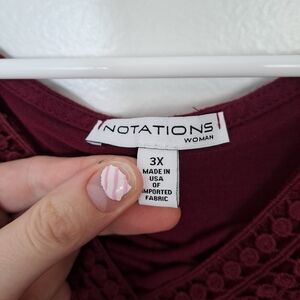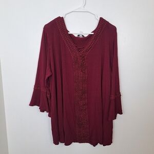 Notations Cranberry Red Boho Going Out Bell Sleeve Flowy Stretchy Shirt Size 3X