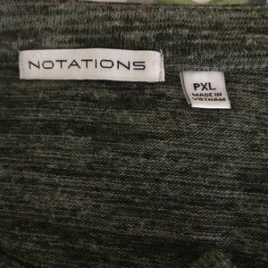 Notations Dark Green Marl V-Neck Henley Pullover w/Tab & Button 3/4 Sleeve PXL