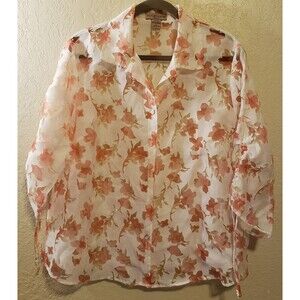Notations Floral Womens Three Quarter Sleeve Sheer Blouse Sz 1X Button Down