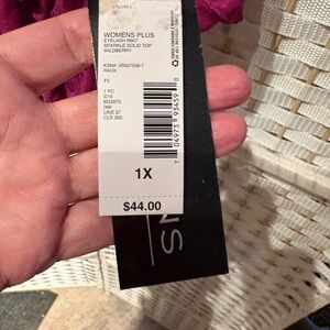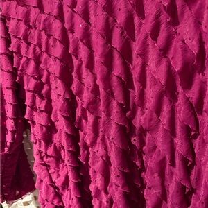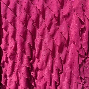 Stylish fuchsia blouse with elegant diagonal ruffles. Ideal for adding flair to your wardrobe. Has fuchsia sequins within the ruffles. Notations.