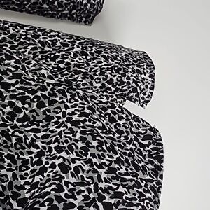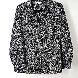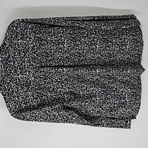 Notations Gray & Black Leopard Print Button Front Blouse wFront Pockets & Slits