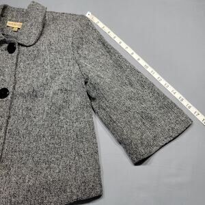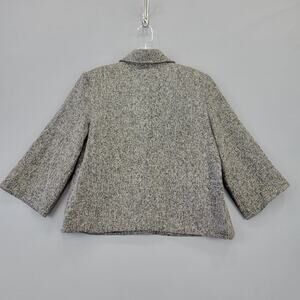 Notations Women's Jacket Size S Gray Charcoal Black White Blended Knit Crop Preppy 3/4 Sleeves Button Up Retro Y2k Shoulder Pads Lightweight Dressy Lined Coat