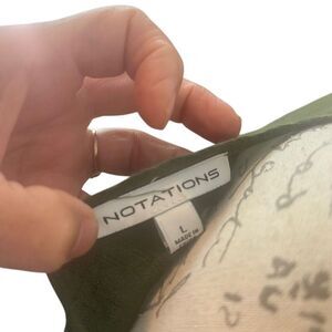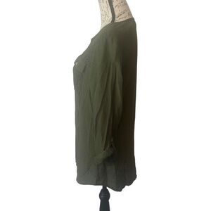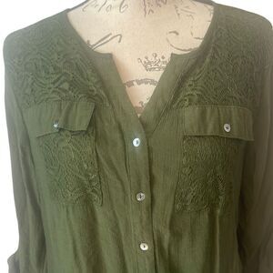 Notations Green button up lace embellishments fold sleeve Blouse L