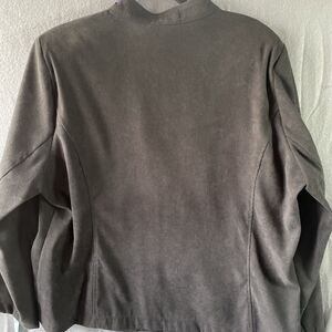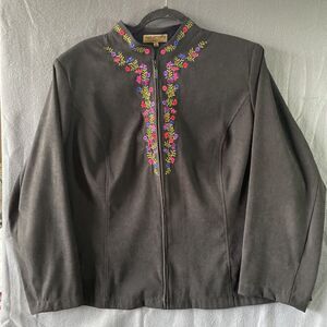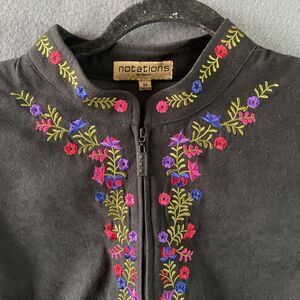 Notations Jacket Sz 3X Floral Embroidered black Pink Ultrasuede Zip Velvet