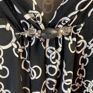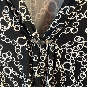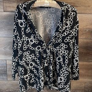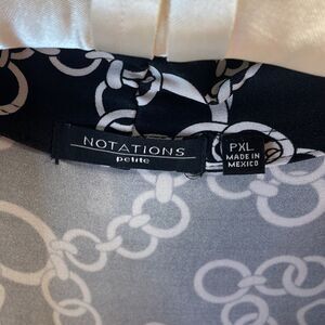 Notations Ladies Open Front Cardigan Blouse Size PXL Black & White Chain Design