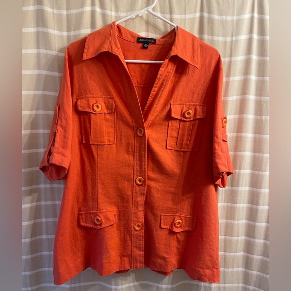 Orange linen blend top Cuffed buttoned sleeve detail Size XL EUC