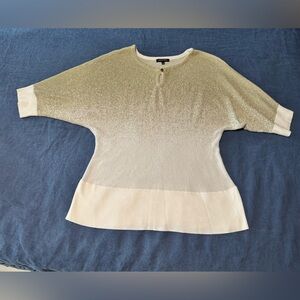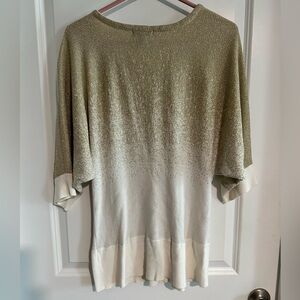 EUC Notations Metalic Gold Glitter and cream Sweater Top Size L.