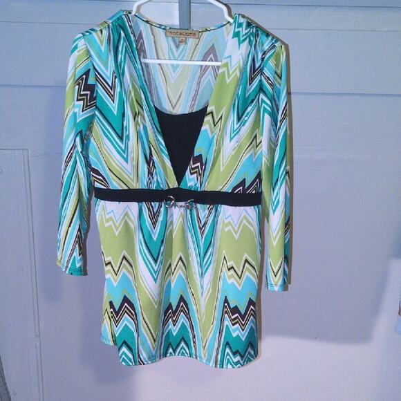 Stylish chevron pattern. Features vibrant colors. Three-quarter sleeves. Perfect for casual wear.